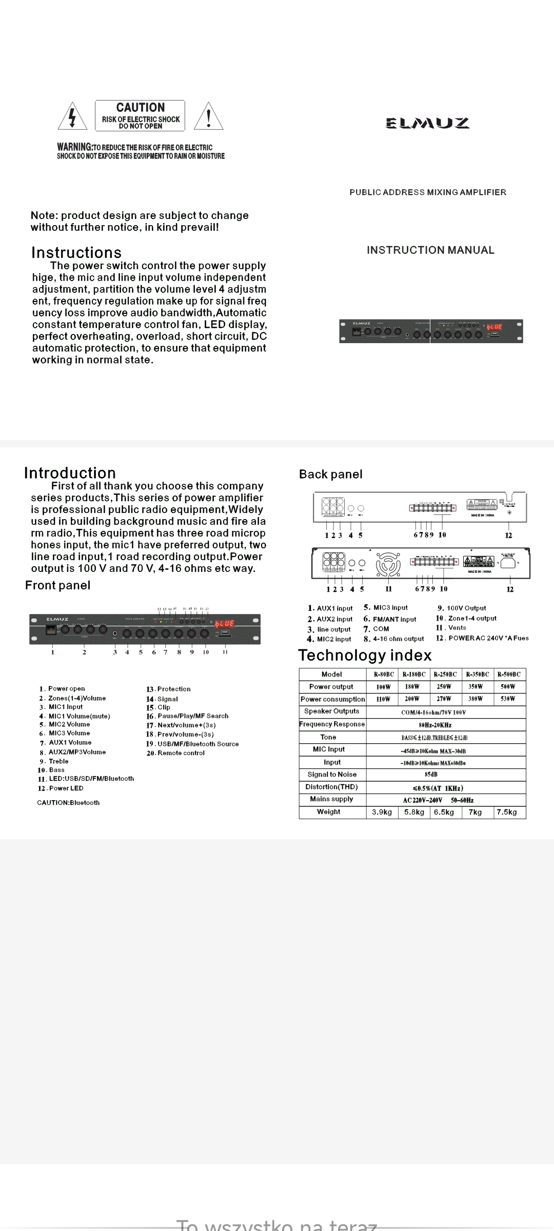 Model | Wzmacniacz radiowęzłowy R-80BC |