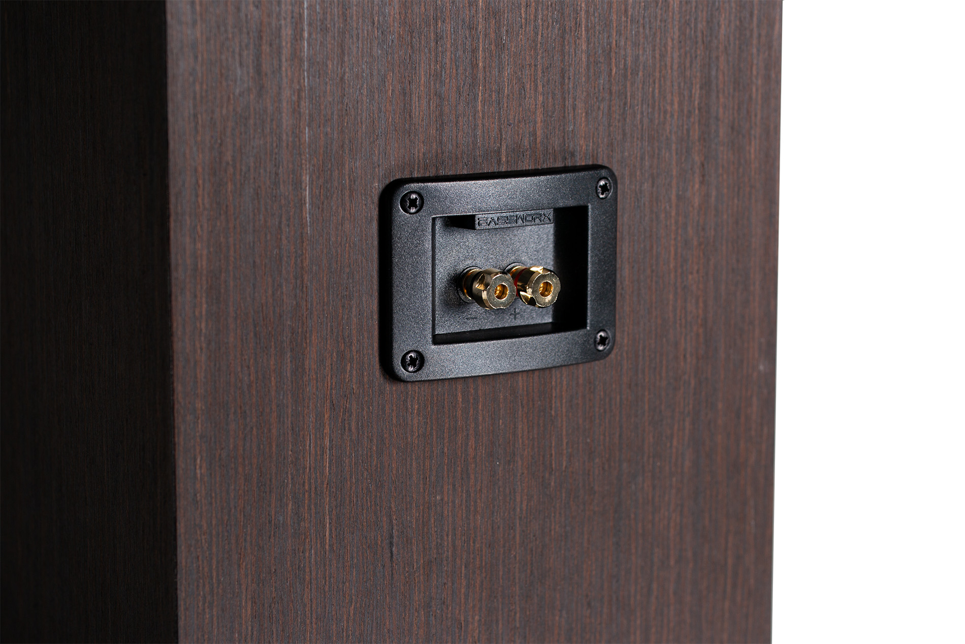 25 kg wielowarstwowej sklejki przekłada się na fizykę: wyższa masa własna obudowy przesuwa częstotliwości rezonansowe poza pasmo akustyczne, eliminując koloryzację brzmienia charakterystyczną dla lżejszych konstrukcji MDF. Wykończenie fornierem wg zamówienia pozwala wpasować kolumny w wystrój sali – orzech, dąb, wenge lub niestandardowa okleina na życzenie.